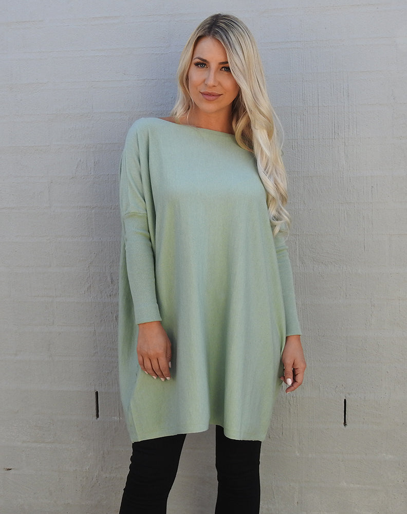 "Chloe" Weekend Jumper "Mint Boat Neck Style"