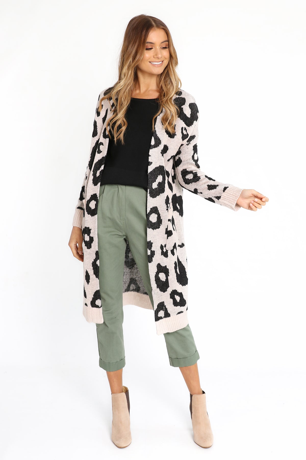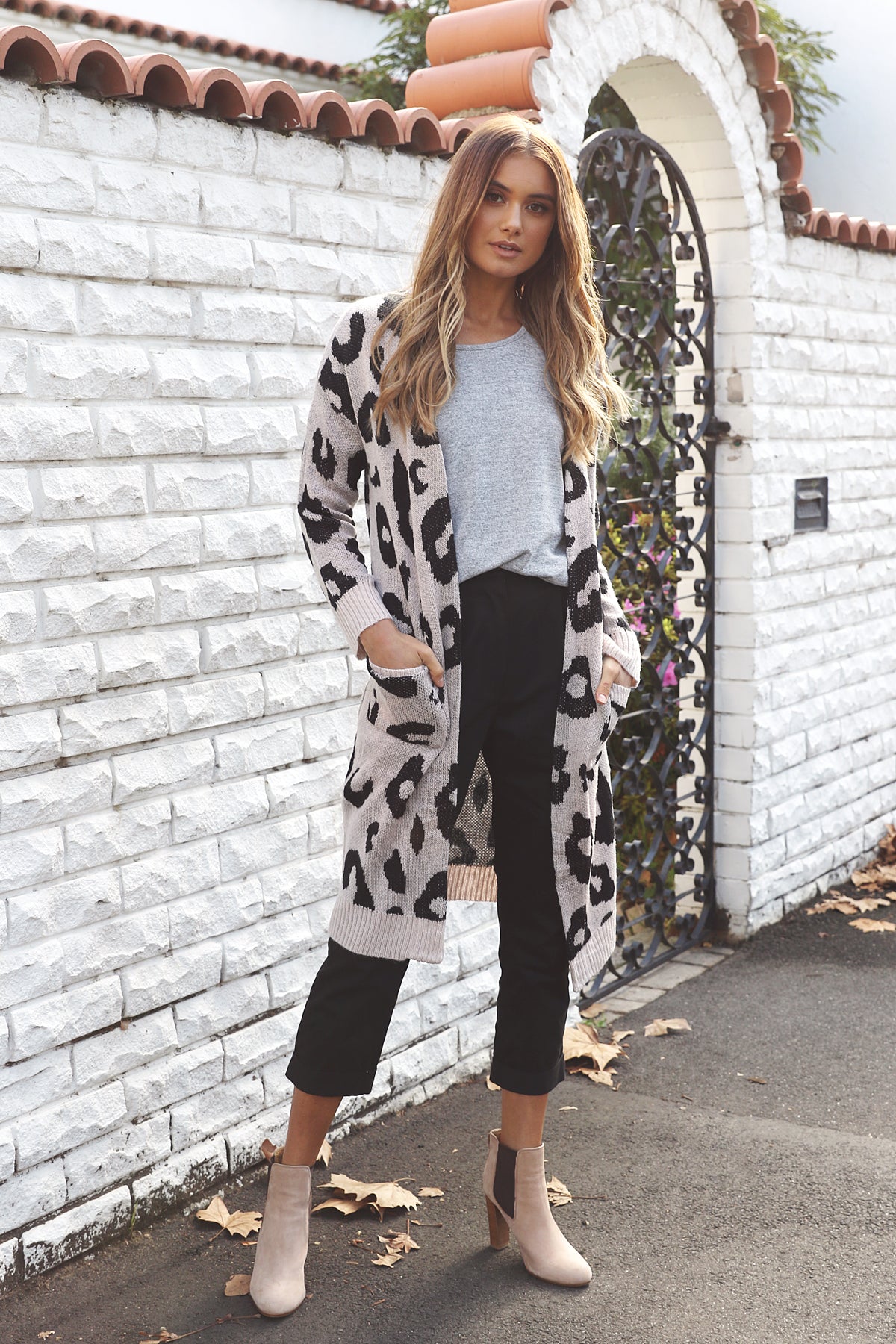 Show off a bit of your wild side with the Animal Instinct Cardigan. In an easy monochrome leopard print, this midweight cardigan features a longline silhouette, large side pockets and long sleeves with ribbed cuffs. Pairs perfectly with earthy tones and winter booties
