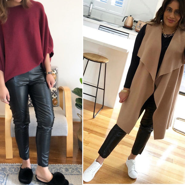 Pleather Pants with fleece lining Stretchable Black 80% PU 20% Polyester