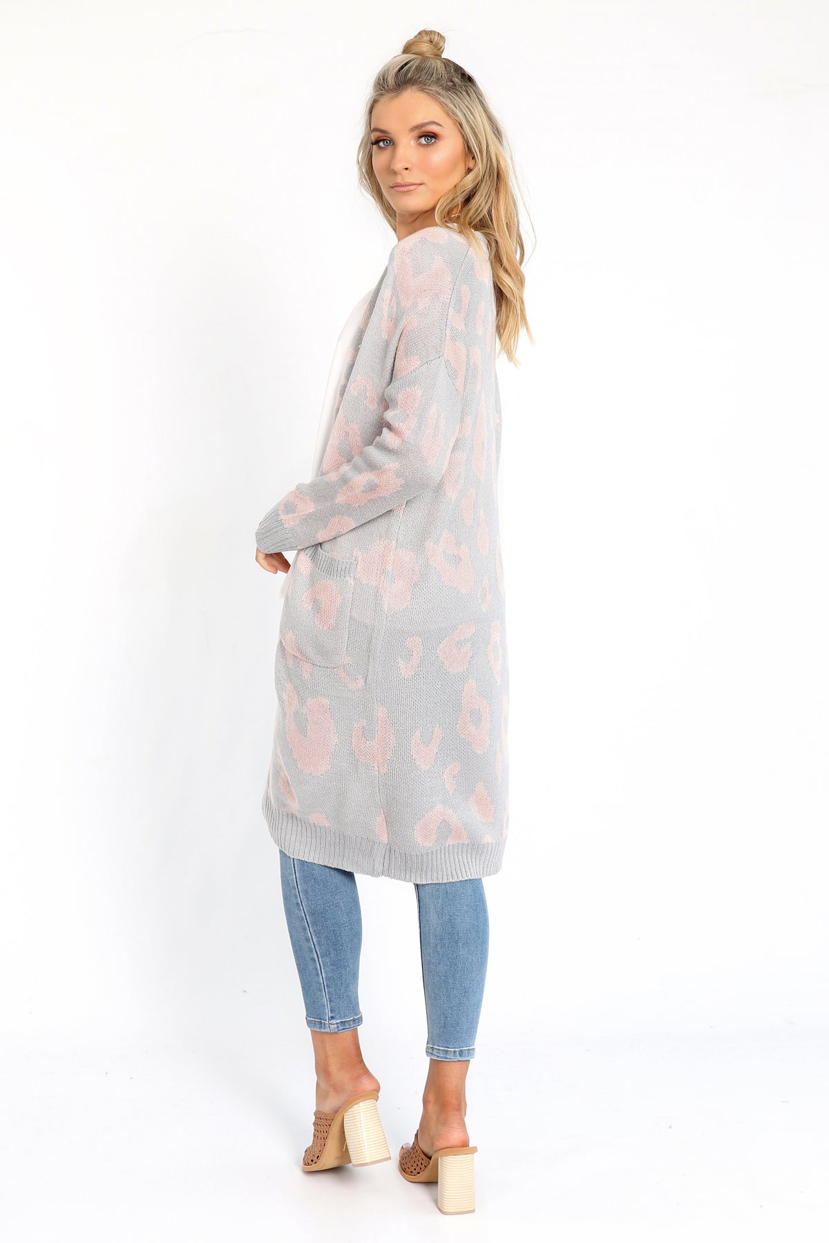 ANIMAL INSTINCT CARDIGAN- Grey & Pink