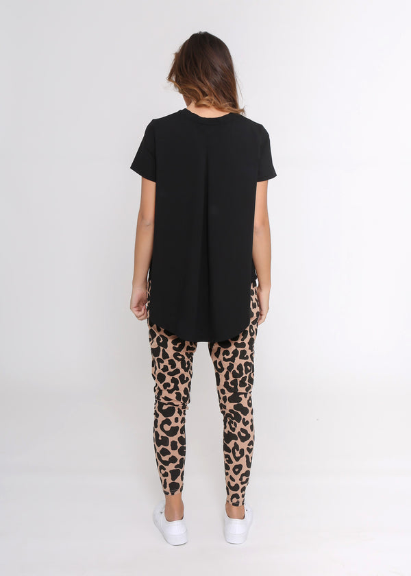 We love this leopard print style! NUDE LEOPARD PRINT DROP CROTCH STYLE FITTED SKINNY ANKLE MODEL IS WEARING A SIZE "SMALL" FABRIC COTTON/ELASTANE